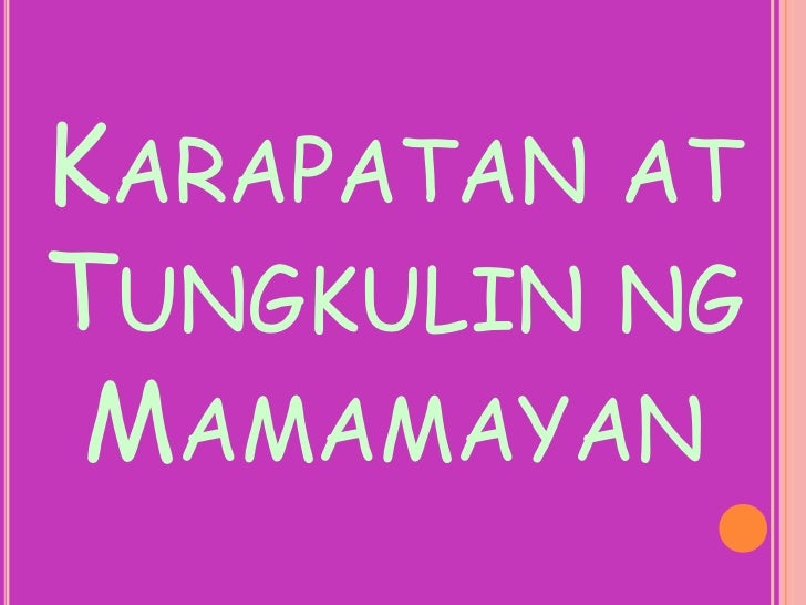 Karapatang magtamasa ng maayos na pamumuhay kahit may kapansanan. Karapatan at Tungkulin ng Mamayang PilipinoMga TungkulinAng buwis ay ibinabayad ng bawat mamamayang Pilipino na may hanapbuhay at ari-arian sa bansa. Theyll give your presentations a professional memorable appearance - the kind of sophisticated look that todays audiences.