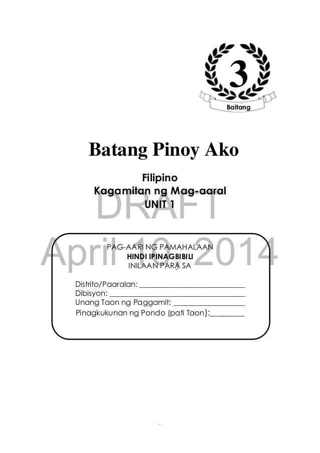 This module is about building your consumer health. DRAFT April 10 2014 3 BATANG PINOY AKO Ikatlong Baitang Filipino Kagamitan ng Mag-aaral Unang Edisyon 2014 ISBN. English pdf.