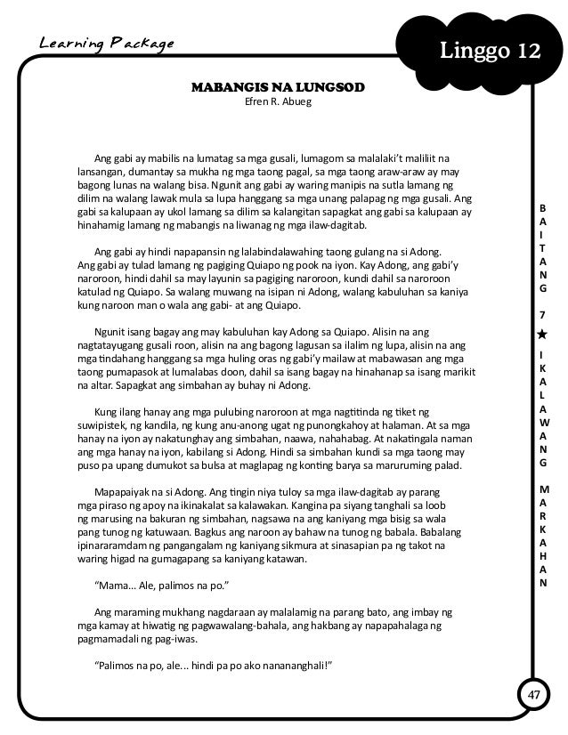 MABANGIS NA LUNGSOD ni Efren R. Nakatambak siya sa bunton ng mga maalikabok na polder at enbelop. Nemo ang batang papel maikling buod - 771504 Si nemo gustong maging totoong bata nung naging totoong bata na siya nahirapan siya kala niya kasi ang ginagawa lang ng bata ay maglaro hindi niya alam mahirap yung pamilya nila at kailangan niyang magtrabaho.